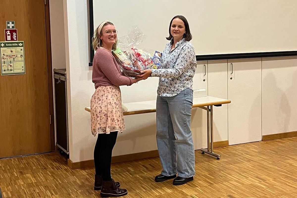Wie bei jeder Mitgliederversammlung sollte auch dieses Mal wieder ein Präsentkorb verlost werden. Die Mitgliederversammlung sprach sich mit großer Mehrheit dafür aus, den Präsentkorb dieses Mal unserer Mitarbeiterin Anika Weber für ihre engagierte Arbeit in den letzten 10 Jahren, zu überreichen.